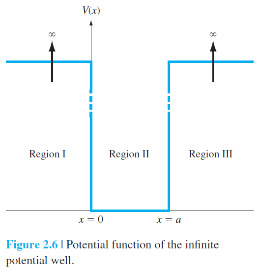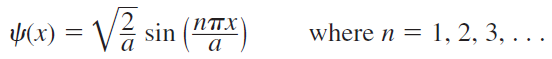 Figure 2.6을 보면 알 수 있듯이, ψ(x=0)=ψ(x=a)=0임을 알 수 있습니다.따라서, A1 = 0, A2 ≠ 0, k=n*pi/a 입니다.