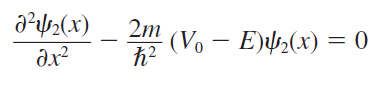 Region Ⅱ에서 V=0이므로 파동 방정식은 다음과 같이 정리할 수 있습니다.
