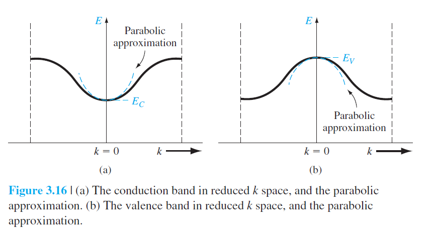 Figure 3.16a, Figure 3.16b은 전도대(Conduction Band)와 가전자대(Valence Band)의 E-K diagram을 근사화한 것입니다.