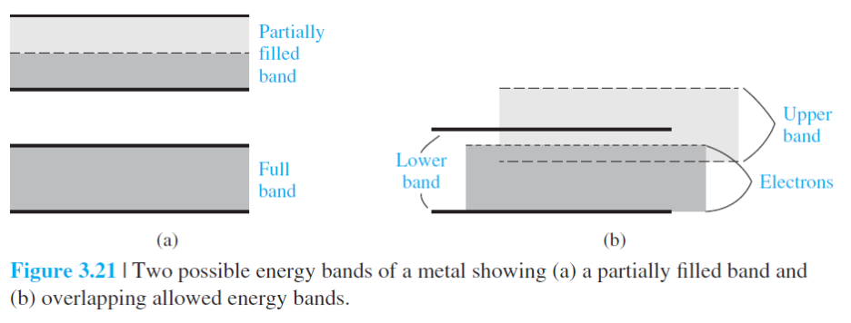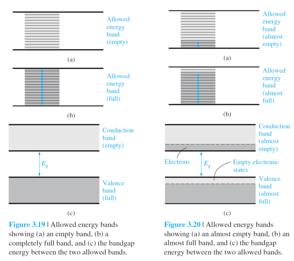 Figure 3.19a 는 허용 에너지 밴드 내에 전자가 하나도 없고, Figure 3.19b는 허용 에너지 밴드가 전자로 가득찬 것입니다.