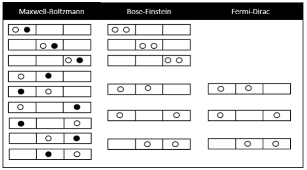 아래의 표와 같이 가능한 에너지 상태에 대한 입자의 분포(the distribution of particles)는 3가지가 있습니다.