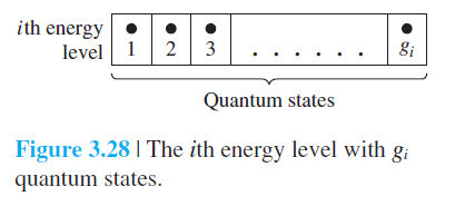 즉, i 번째 에너지 준위(Energy Level)에 있는 양자 상태(quantum state)에 qi 개에 전자가 Ni개가 분포할 경우의 수 입니다.