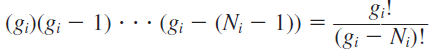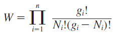 이는 N_i 개의 전자를 q_i개의 양자 상태(quantum state)에 배열하는 것과 같으므로 다음과 같습니다.