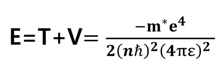 예를 들어, 수소(H) 원자의 경우는 m*=m0 이며, ε=ε0이므로, E = -13.6eV임을 알 수 있습니다.