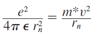 이 때, 쿨롱 힘(전하를 띠는 두 입자 간 작용하는 힘)과 구심력(중심으로 잡아 당기는 힘)은 같으므로 다음과 같습니다.
