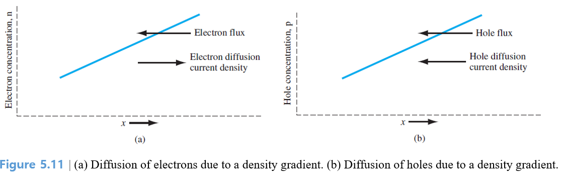 부호 때문에 혼동될 수 있으나, Figure 5.11을 참고하면 정공의 확산 전류 밀도(Diffusion Current Density)의 이해가 쉽습니다.