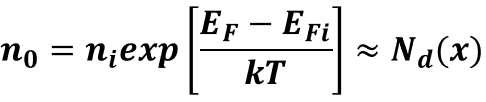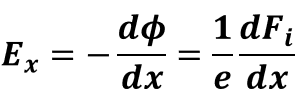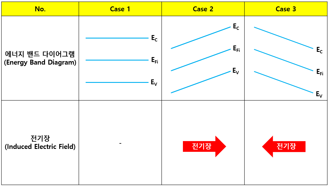 즉, 열평형 상태에서 진성 페르미 준위(EFi)가 거리에 따라 변한다면 전기장(E)이 존재한다는 의미입니다.