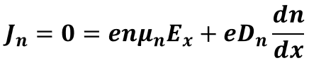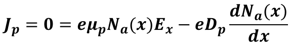 즉, 캐리어의 농도차로 인해 확산되고, 확산으로 인해 형성되는 전기장(E)은 확산을 방해하는 방향으로 생성되는데요.
