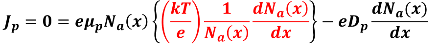 이미 공부했던 경사 불순물 분포(Graded Impurity Distribution)에 의한 전기장(E)을 식 (5.44)에 대입하면 다음과 같습니다.