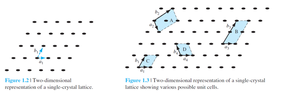 2차원 상에서 표현되는 다양한 Unit cell들을 볼 수 있습니다. Unit cell을 다음과 같이 정의합니다.
