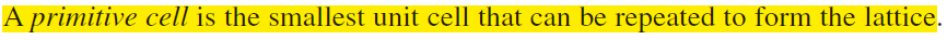 다양한 Unit cell 중에서 가장 작은 Unit cell을 Primitive cell이라고 합니다.