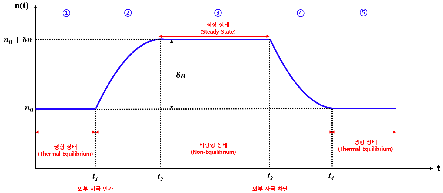 오늘은 외부 자극에 의해 발생한 과잉 캐리어(Excess Carrier)가 시간에 따라 어떻게 변화하는지 알아보겠습니다.