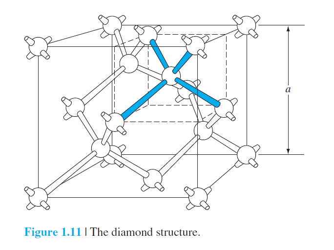 위의 Figure 1.11은 다이아몬드 구조의 Unit cell을 표현한 것입니다.