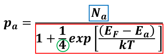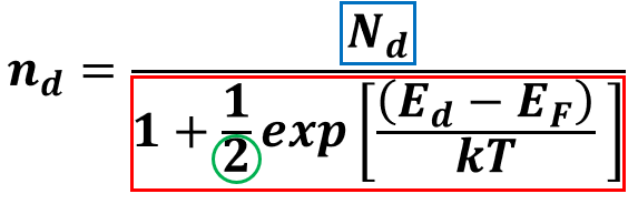 주목할점은, 자연지수함수의 계수부분입니다. 도너 전자의 경우는 1/2, 억셉터 정공의 경우는 1/4인 것을 알 수 있습니다.