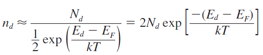 즉, 도너 전자(nd)는 도너 원자(Nd)의 수에서 이온화 된 도너 원자(Nd+)를 뺀 것과 같다는 것을 의미합니다.