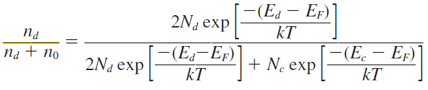 도너(Donor)의 이온화 된 정도는 전자의 농도(n0)와 도너 전자의 농도(nd) 관계식으로 표현할 수 있습니다.